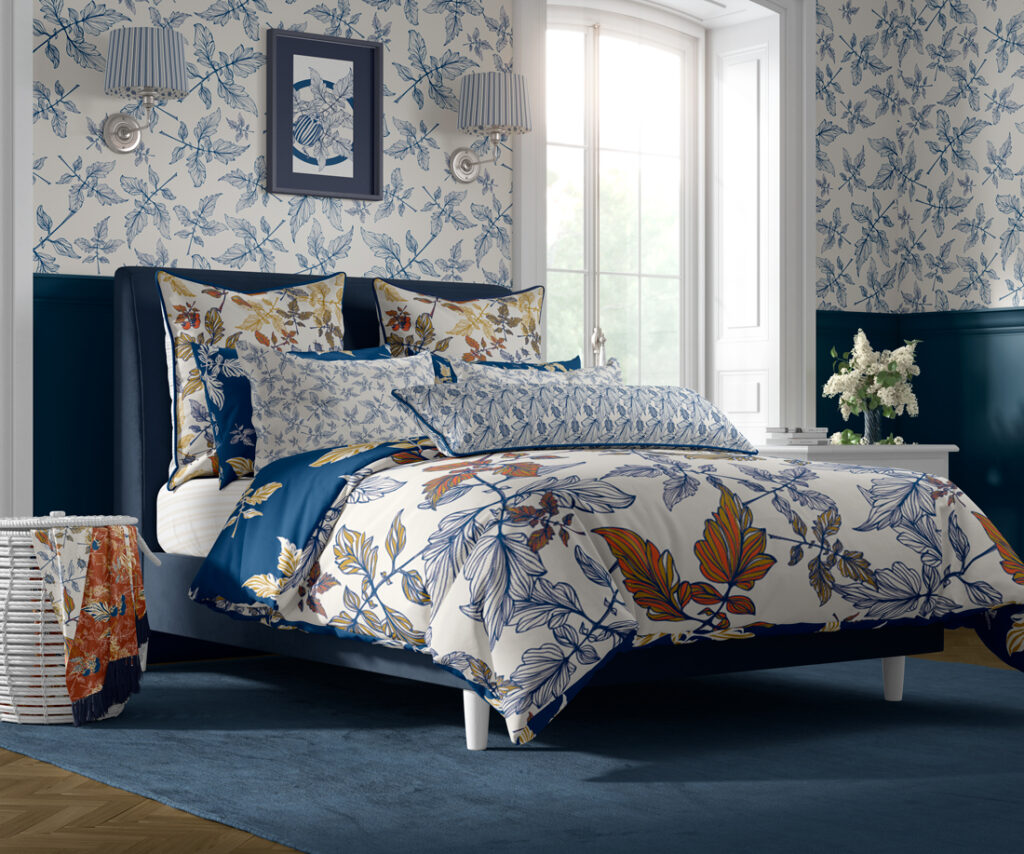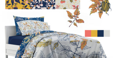 Coleções com desenho autoral — à mão e vetorial — disponíveis para licenciamento em cama, mesa e banho, papelaria e decoração.