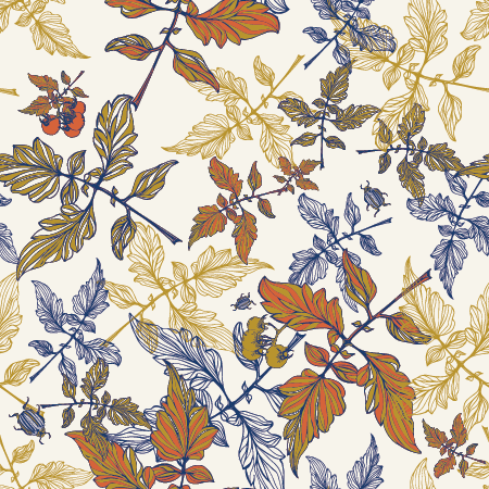 Surface pattern design botânico começa antes do papel. Começa na observação — na atenção dada a uma forma que existe no mundo real antes de existir como desenho. No caso da Coleção Tomate, a observação foi literal: horas olhando para os frutos, os caules, as folhas recortadas, a forma como os cachos se organizam no galho.
